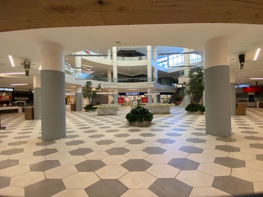 I took this photo from inside a store with access to the outside. It’s interior door is shut and the silence and emptiness of the mall it is in was eerie. As strange as this sight seems, I cannot imagine this mall the way it uses to be full of people.
