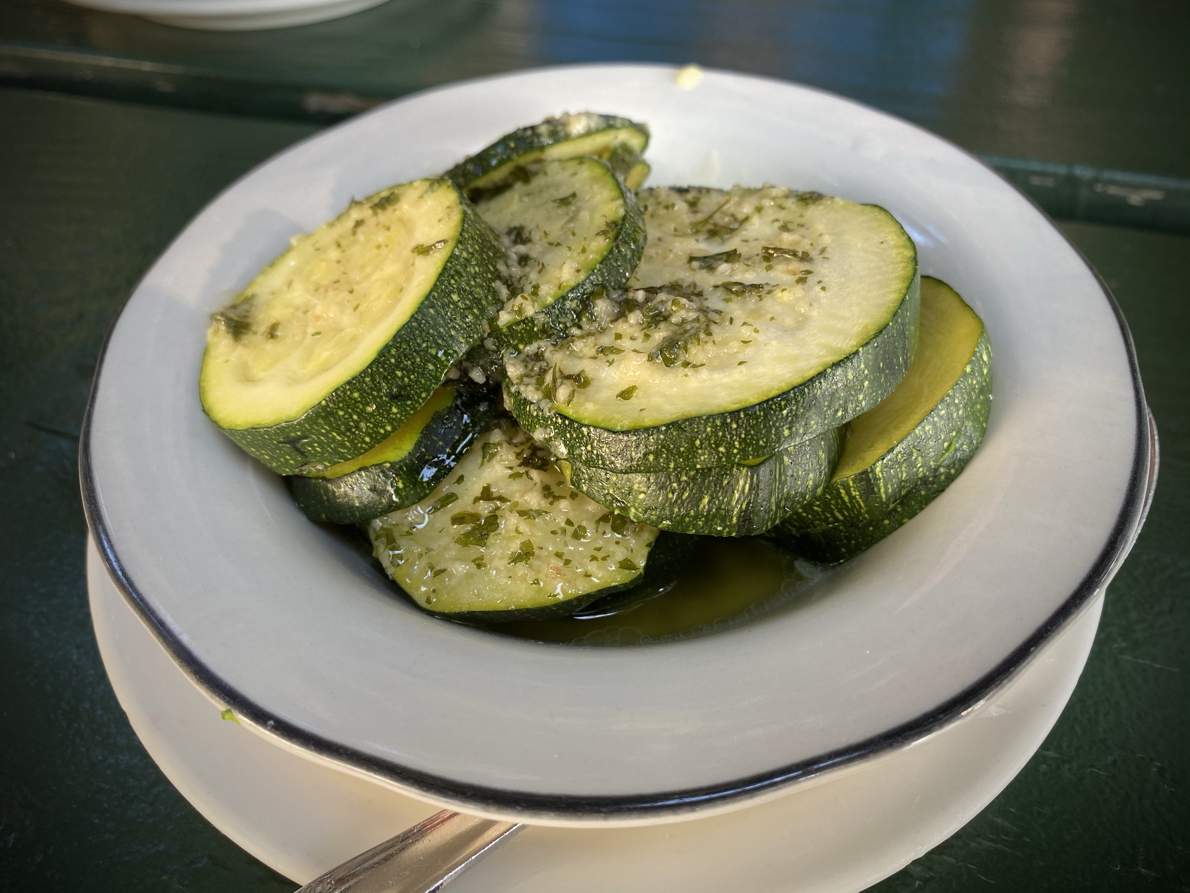The Garlic Bread was good but nothing particularly remarkable about it. The Sautéed Zucchini in Garlic Butter was very delicious and the Zucchini’s were very picked from this restaurant’s garden that same day. It’s hard to ask for veggies fresher than that. The Shrimp Scampi was also very delicious with more of our that fresh zucchini a shrimp that was quite fresh as well. This dish was also prepared in that garlic butter and was quite saucy at the bottom of the dish. At this restaurant you can build your own pizza but I decided order the Boccali’s Combo Pizza which was loaded with pepperoni, sausage, mushroom, olive, bell pepper, and red onion. This was probably my favorite of all the items we ordered, The only thing I would change is to make the pepperoni be cooked longer. I tend love the charred flavor of ingredients, but I do realize it’s not the healthiest thing to eat—we have to watch out for those carcinogens.