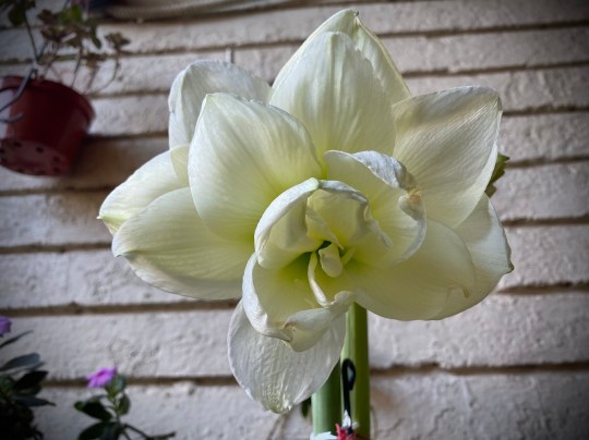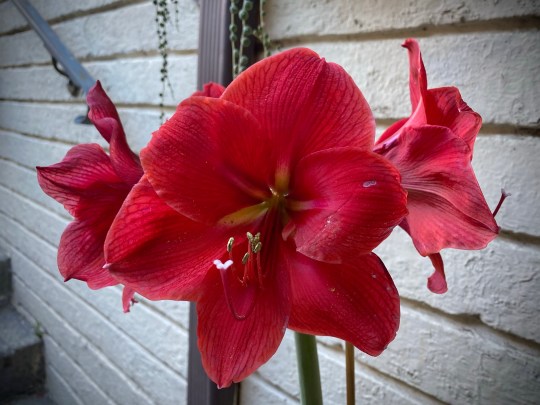 Here are two flowers from my mom’s garden that she proudly wanted to show me. I’ll need to take pictures of her orchids in the coming weeks. She’s got a few flowering now and lots more on the way.