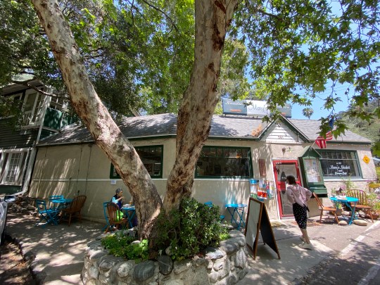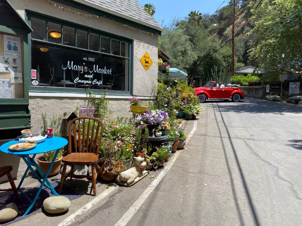 I found this hidden gem nestled in the foothills where the mountain meets the urban sprawl of the Los Angles region. It’s in the Sierra Madre community at the foot of the San Gabriel Mountains. I loved seeing all the potted plants and so many flowers. The day was perfect. The marine layer had already dissipated, and we were left with warm sunlight and a cool breeze stirring the leaves of all the trees. We had a late breakfast here, but I did not post any pictures of the food because it was a simple breakfast burrito, and it didn’t photograph well. It was tasty, but nothing extraordinary. The attractiveness of this little café is not so much its food, but mainly its decor, location, and overall friendly and casual atmosphere. The other thing I appreciated about this place is the ladies working in the restaurant. Their lovely smiles, floral dresses, and flowers in their hair completed a charming atmosphere. I will be coming back here and giving the other items on the menu a try.