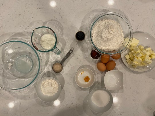 It ends up being a bit of a workout. I have a renewed respect for bakers. Despite the work, I really enjoyed the process so far. There is something incredibly satisfying about creating something with your hands and watching it come together. So far everything is looking good and my dough is currently sitting in the refrigerator for it’s second and longest rise. I’m really praying, hoping, crossing my fingers that all of the ingredients pictures above magically turn into a beautiful and delicious bread.