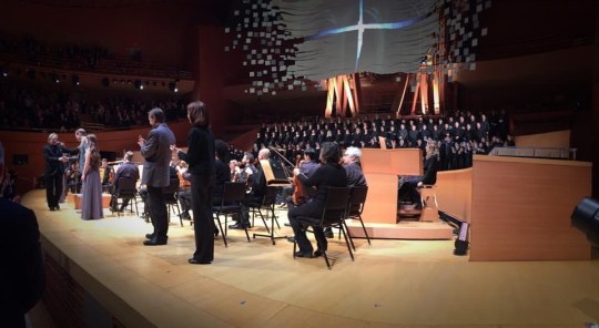 I made it to the concert hall and down and down I went until I parked on the seventh level beneath the hall. I went to the ticket counter looking for the cheapest seat I could find and as I was about to hand over my credit card for some seats way in the back, a woman interrupted me and offered me a spare ticket she had. I asked her if she was sure and I eventually took the ticket. It was at the very front of the orchestra section. I had no plans to be at Disney Hall about an hour ago, and here I was now on the eve of my birthday with a front row seat to see Michael Tilson Thomas conduct the LA Phil in a performance of Beethoven’s Missa Solemnis.