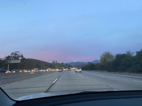 The picture doesn’t really do it justice, but it was quite the beautiful drive this afternoon. A few clouds were tinted pink, and the mountains a slight bluish-purple with beautiful white peaks.